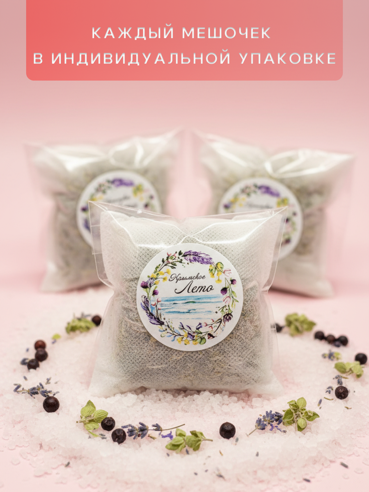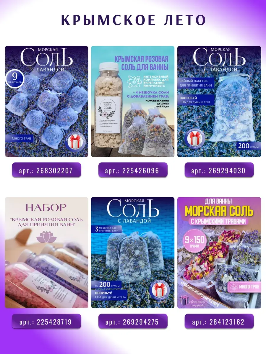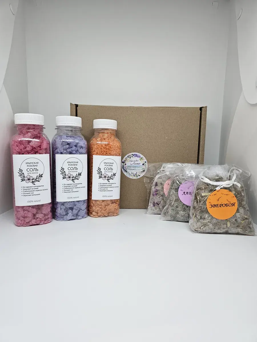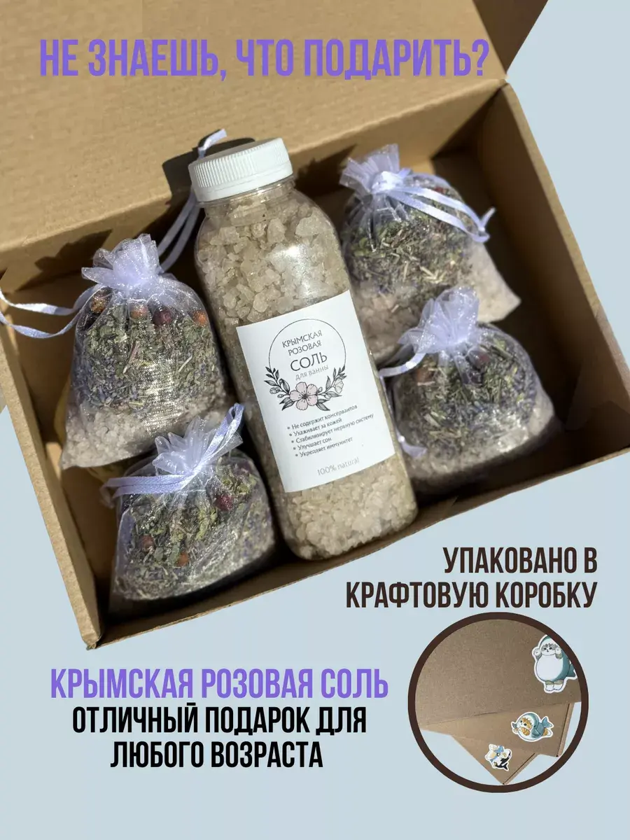 Летние Мотивы - Крымская морская соль и Крымские травы в чайных пакетиках для ванны. Ценный подарок всей семьи. Это природная косметика снимает усталость с ног, восстанавливает кровообращение, убирает целлюлит, восстанавливает кожу, нормализует сон . Курс ванны с морской солью проводят для похудения. Соль натуральная полезна для детских процедур, ароматерапии, запарки для ног. Набор украсит вашу ванную комнату и подарит запах степных трав. Соль магниевая укрепит иммунитет всей вашей семьи. Мы не сушим соль, она приходит вам с естественной рапой с моря. Каждый набор собирается в ручную, он великолепно подойдет для SPA- процедур и максимального расслабления после рабочего дня. Содержит цветки лаванды, душицы, чайная роза, крымская розовая соль. Аромат великолепный, чайный пакетик для ванны можно использовать как ароматизатор до его применения. Соль - это натуральный скраб с Черного моря. Крымская косметика - это настоящий сувенир с летнего отдыха. Наслаждайся круглый год травами и запахом моря. Мы собираем их исключительно для тебя.